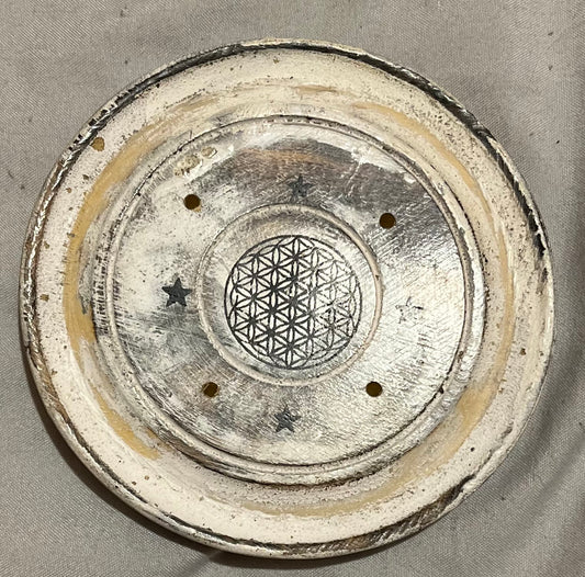Porte encens disque délavé blanc - Cônes & Batônnets d'Encens